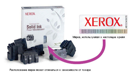 XEROX використовує «захисну марку» на упаковках тонер-картриджів для твердочорнильних та лазерних апаратів для того, щоб замовник розумів, що використовує оригінальний продукт.