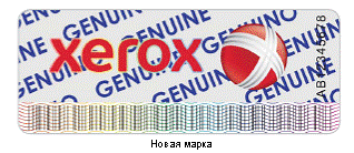 Захисна марка є маленькою (3.3 х 1.3 см) голографічною наклейкою, яка є доказом того, що даний товар «Оригінальний від XEROX».